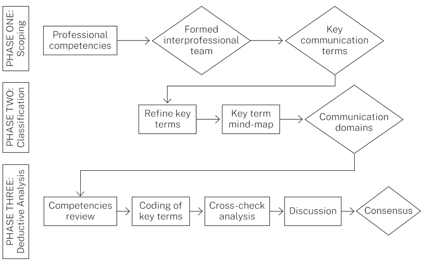 Methodology: Researchers from nine distinct health professions used an interprofessional methodology to extract and organise terms related to healthcare communication from professional competency standards documents.