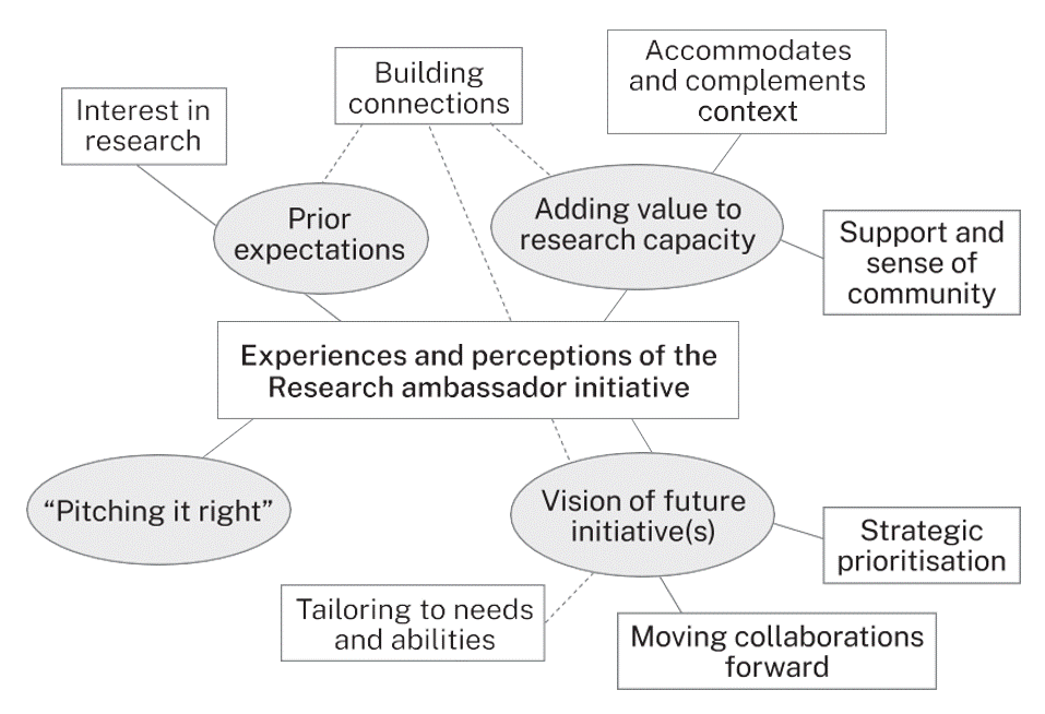 A participant reflected on the terminology, 'research ambassador', suggesting that more clarity was required regarding the initiative's scope, distinguishing between research ambassadorship and research skills development, where training needs might differ, and potentially developing two streams to tailor to each type of training. A few participants also discussed the importance of continuity to build and drive research capacity within the health service following the initiative, which could be achieved by considering investment in people, and leveraging research ambassadors within the organisation. Suggestions included incorporating relevant key performance indicators (KPIs) and outcome measures within the institution.